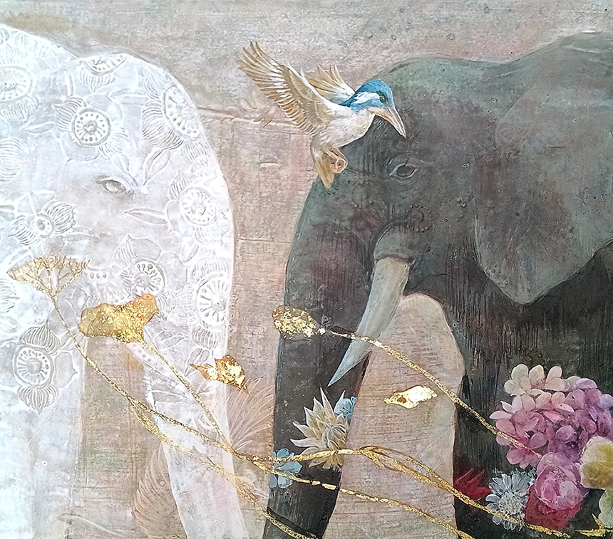 井手尾摂子 「風光る」F10 テンペラ・アクリル・金箔
