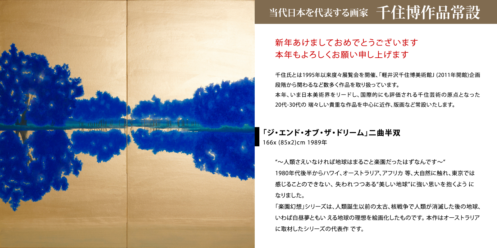 2026年新年より、当代日本を代表する画家千住博氏の20代-30代の 瑞々しい貴重な作品を中心に近作、版画など常設いたします。