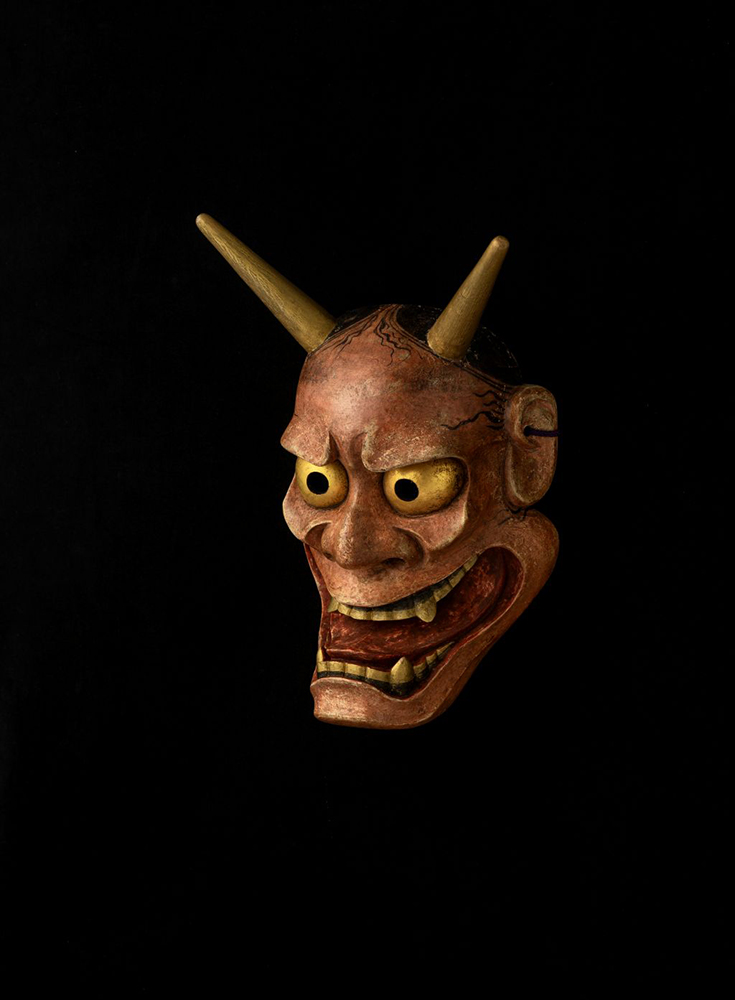 Collaboration between Noh masks and calligraphy “Prajna Flower”