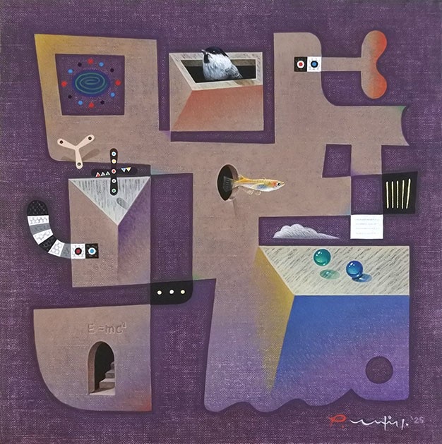 大村光 「万物和音.12-15」S4 ボードに麻布張り・アクリル絵の具