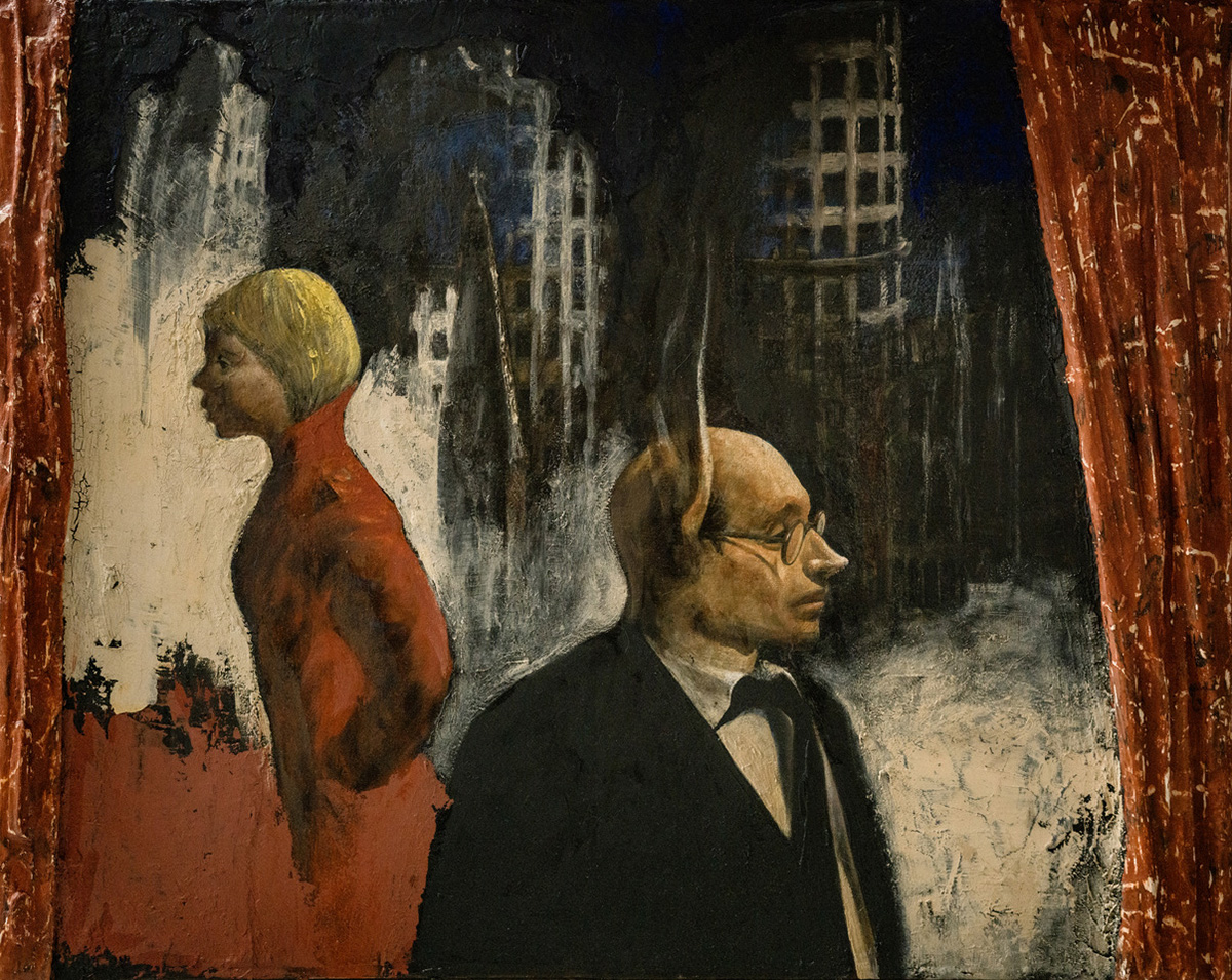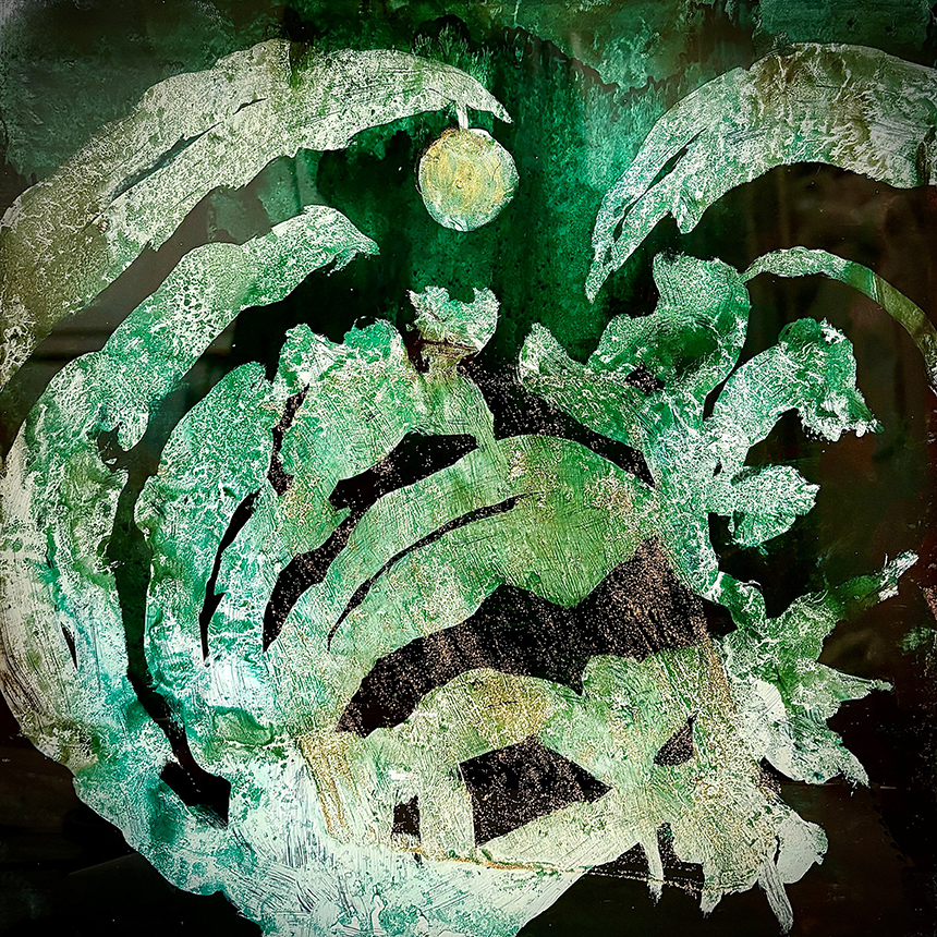 嶋村有里子「琥珀の夜/Amber Night」30×30㎝ ガラス絵・油彩