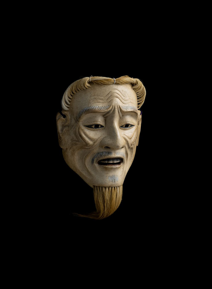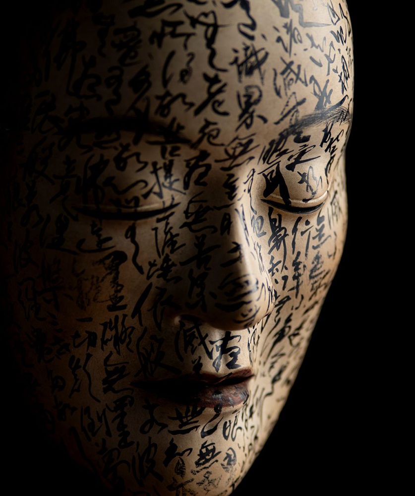 Collaboration between Noh masks and calligraphy “Prajna Flower”